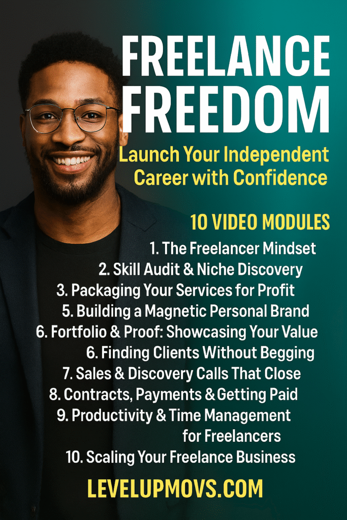 Ready to break free from the 9-to-5 grind and build a business on your own terms? Freelance Freedom is your step-by-step masterclass to becoming a high-performing freelancer—whether you’re starting from scratch or scaling your side hustle into a full-time income.